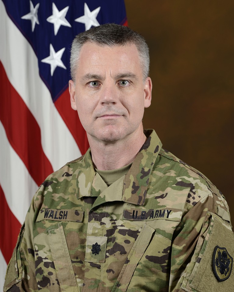 U.S. Army Lt. Col. Andrew V. Walsh poses for his official portrait in the Army portrait studio at the Pentagon in Arlington, Va., Feb 19, 2019. (U.S. Army photo by Monica King)